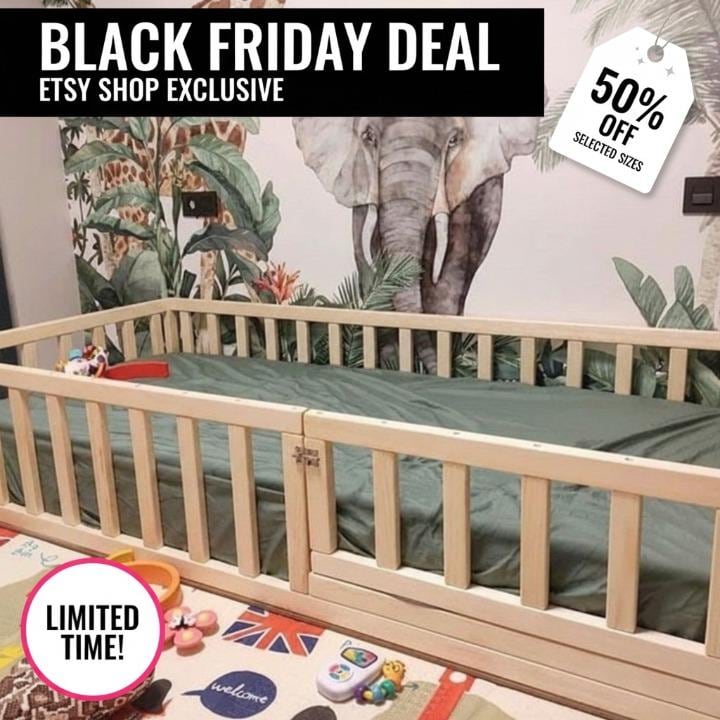 Black Friday Deal With Door Option, Montessori Bed, Floor Bed with Rails, Toddler Bed, Co-Sleeping Bed, Bodenbett, Kinderbett, Bed Frame